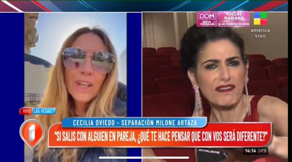 Desde Las Vegas, Estados Unidos, Cecilia Oviedo, la exmujer de Nito Artaza, brindó un móvil en vivo para Intrusos (América) y defenestró a Cecilia Milone.
