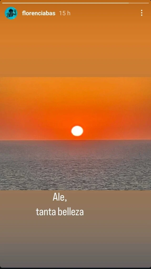 Como era de imaginar, Florencia fue una de ellas, y lo hizo a través de una historia de Instagram. La mujer de Ricardo eligió compartir una foto de un atardecer sobre el mar, y debajo escribió: "Ale, tanta belleza".