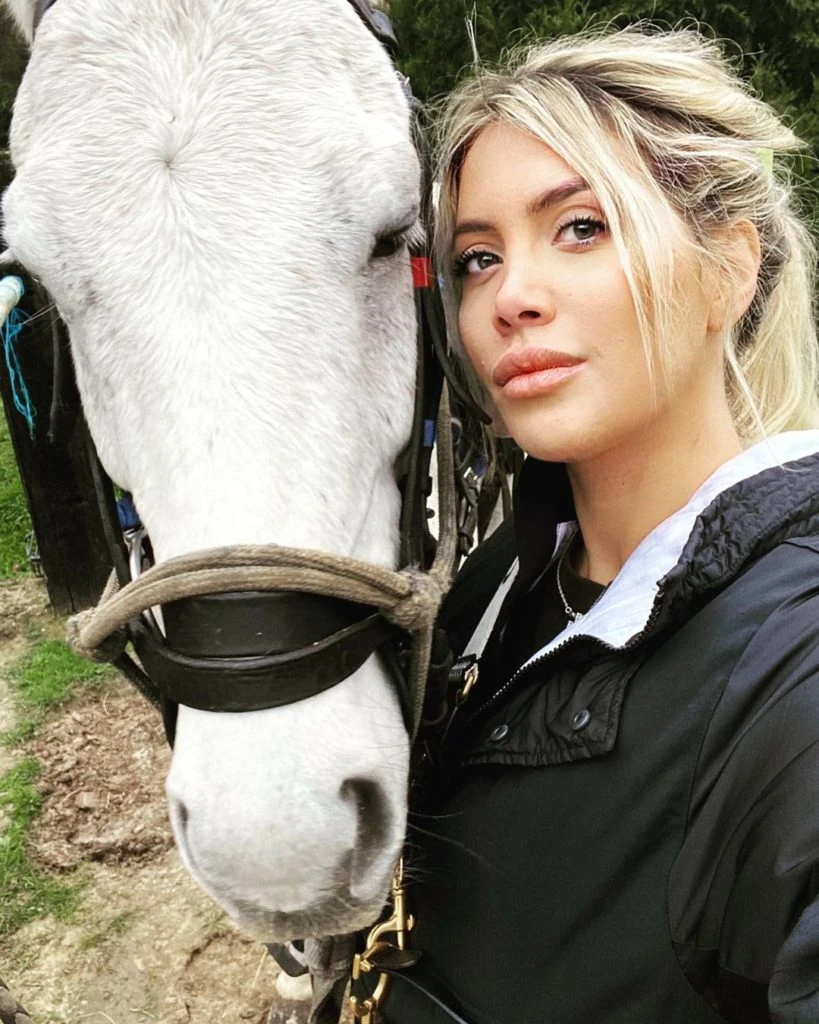 Cansada de los rumores, la esposa de Mauro Icardi compartió este martes varias selfies muy cercanas y sin filtros en su cuenta de Instagram, para demostrar que ella es 'la más potra'. ¿Se refiere a ella o a la equina que la acompaña?
