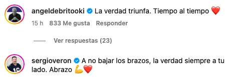 Entre los mensajes de apoyo que recibió Lucas, se destacó un contundente respaldo por parte de Ángel de Brito. El famoso conductor, quien se pronunció siempre de su lado y condenó categóricamente al artista, expresó: "La verdad siempre triunfa. Tiempo al tiempo".