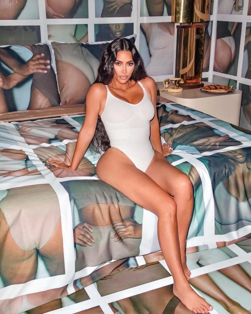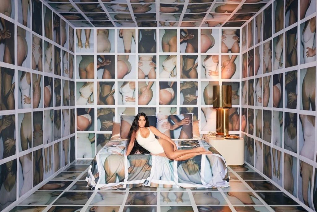 Fotografiada por Vanessa Beecroft, la más famosa del clan posó con algunas de las piezas de underwear en sets revestidos –del piso al techo– con fotos compartidas por sus clientas en las redes sociales luciendo sus ítems modeladores.