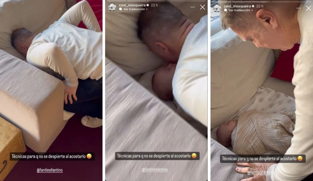 Poco después de ese lindo momento en familia, Coni compartió un video mostrando la particular manera que tiene su marido para que su hijo Beltrán concilie el sueño y no se despierte una vez que deja de estar a upa.