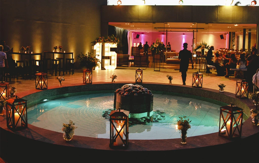 El salón tiene más de 8 mil metros cuadrados. Cuenta con un espacio verde gigantesco y un salón cerrado con tecnología diseñada específicamente para celebraciones. Diseñada con varias suites especiales como sectores de relajación y todos los amenities de lujo necesarios para la previa de una gran fiesta.