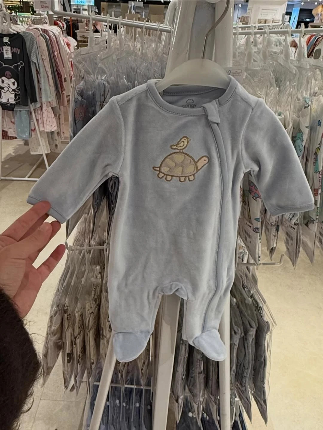 Una prenda de bebé en tono gris, con una tierna estampa de una tortuga acompañada por un pequeño pájaro. El detalle cromático fue el primer disparador de especulaciones: muchos interpretaron el color como una posible señal de que Úrsula y el Chino estarían esperando un varón.