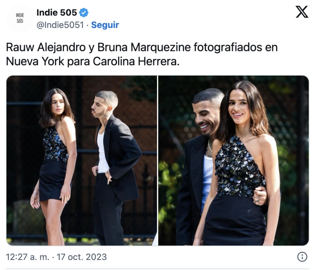 El primero al que se le adjudica un romance es a Rauw Alejandro, a quien se lo vio muy cariñoso con la modelo brasileña Bruna Marquezine. Tal y como se ve en las imágenes que circularon en las redes sociales, el intérprete de Hayami Hana la toma cariñosamente de la cintura e incluso se dan un beso en la mejilla.