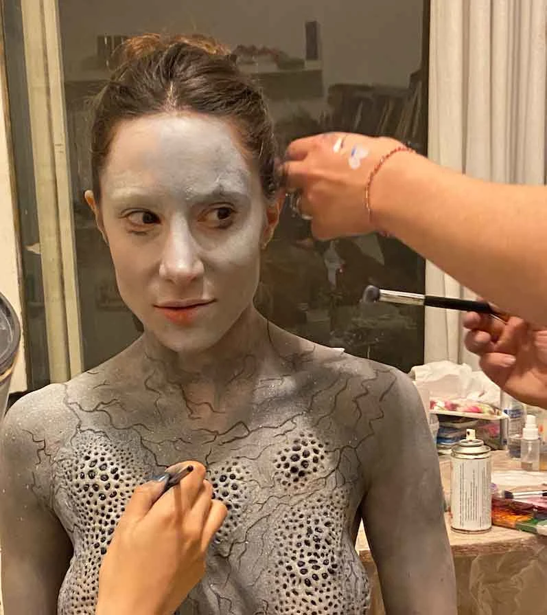 "El rodaje fue muy divertido", continúa. "¡Y bien diferente también! Por ejemplo, es la primera vez que permanecí siete horas sentada para que me maquillen. Porque, claro, si bien mi personaje por momentos luce elegante y con un vestuario y peinado increíbles, es un fantasma que lleva cien años muerto", relata Bravi aumentando el suspenso.