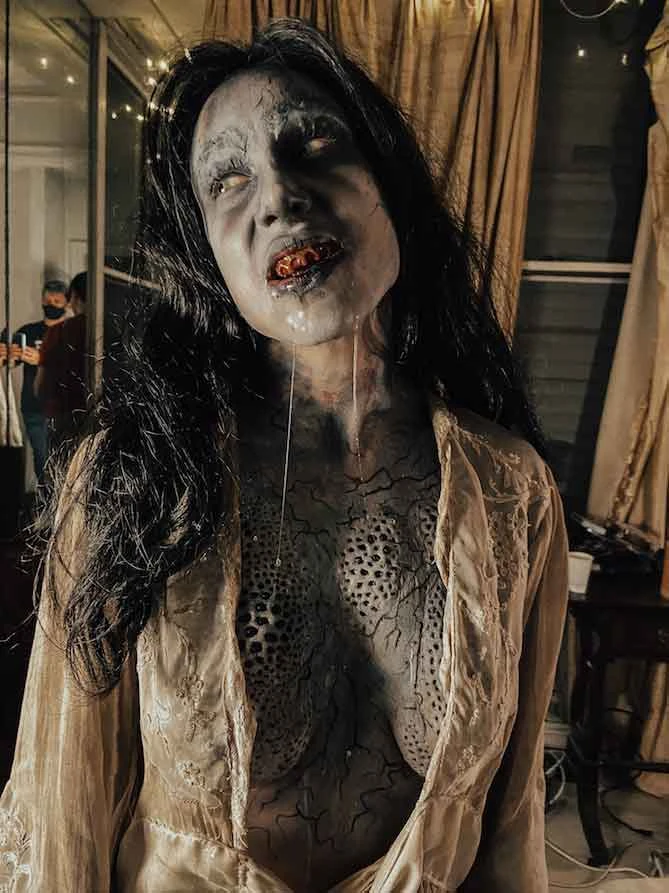 "¡El género terror me encanta! Se generan ambientes mágicos y misteriosos en el rodaje. Esta vez las luces se apagaban y bajaba la tensión de toda la casona antigua. ¡Muy loco!!", concede la bailarina, modelo y hoy más que nunca actriz y conductora Lucía Magdalena Ana Bravi (33).