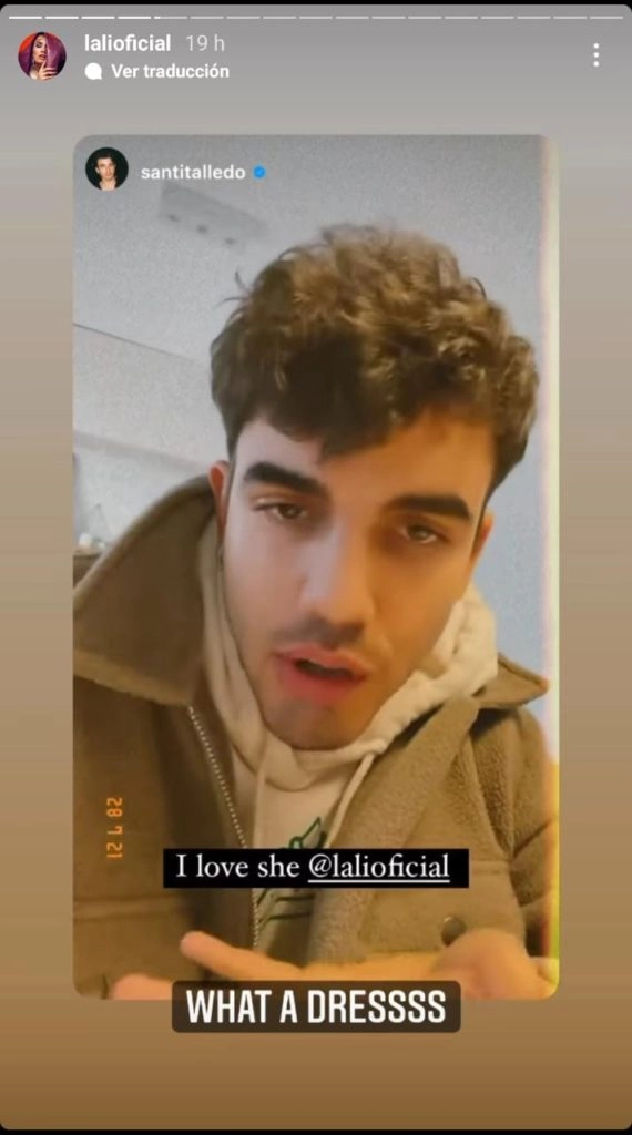 En las últimas horas, Santi Talledo, un colega amigo de la interprete, la etiquetó en una story de Instagram y le escribió "I love she" (en referencia a una de las frases en inglés que dijo en esa entrevista). Ella, por su parte, reposteó el mensaje de Talledo y agregó "What a dressss". Así fue como dejó en claro que puede reírse de si misma y de sus errores.
