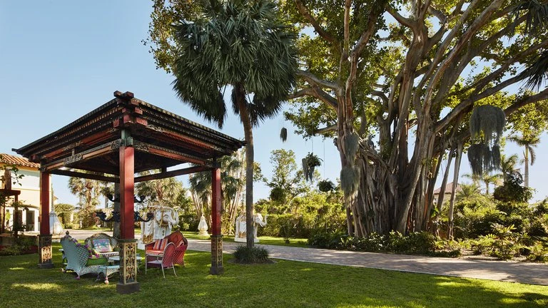 “Un árbol de Banyan de 150 años de edad, en la entrada de mi casa, el jardín y el musgo español y otras flores viven entre sus ramas. Elefantes de un proyecto de arte público de Peter Tunney montan guardia en la entrada junto a una estructura antigua de un templo balinés” así describió Faena en su libro; Alan Faena. Alchemy & creative collaboration. Architecture, design, art el ambiente de su propiedad.