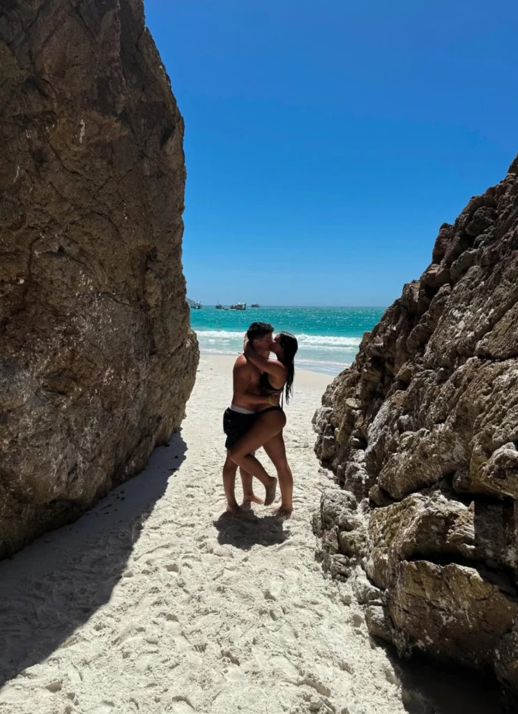La joven publicó una galería de fotos de su paso por este destino que es el favorito de muchos en el verano, y la postal de portada es una de ella con su novio Franco, abrazados y a los besos en medio de la paradisíaca playa y con un espectacular paisaje de fondo.