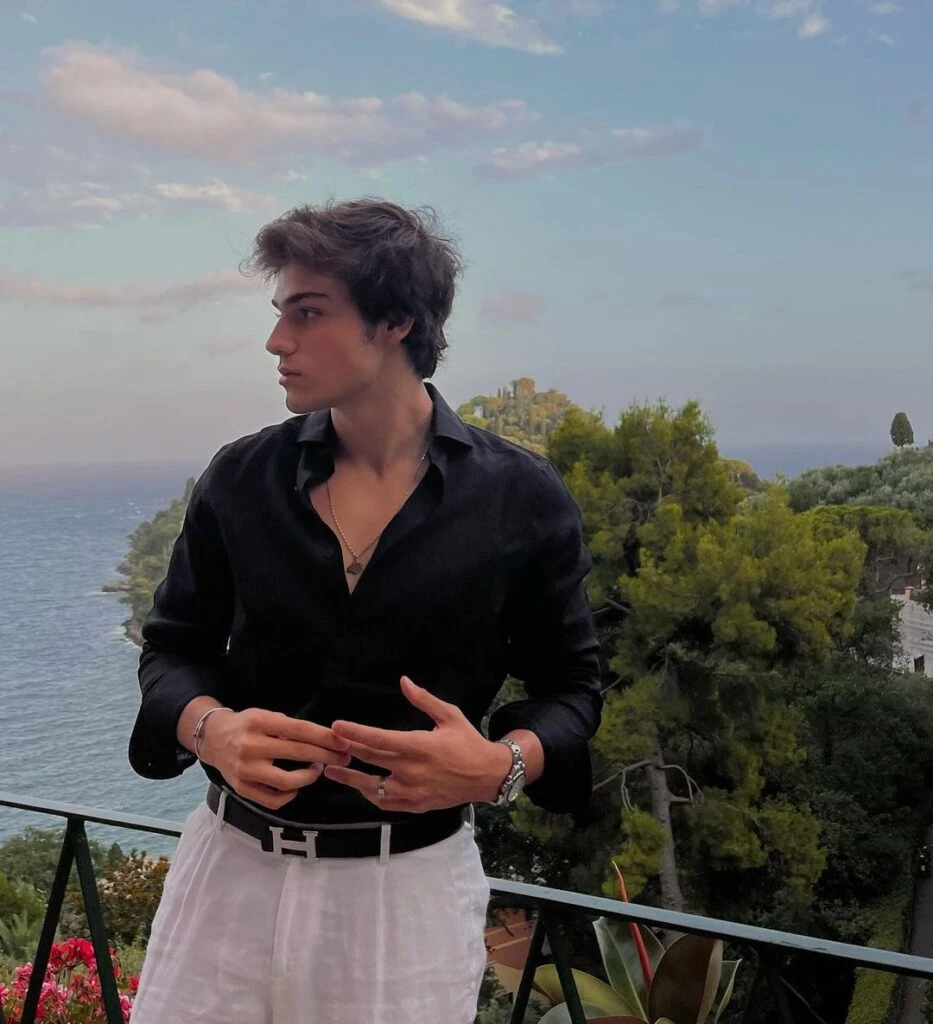 Luca cosechó miles de likes y comentarios con un espléndido look en Portofino, Italia. Desde esa ciudad pesquera posó con una elegante camisa negra desabrochada y un pantalón de vestir color blanco que lookeó con un cinturón firmado por Hermès.