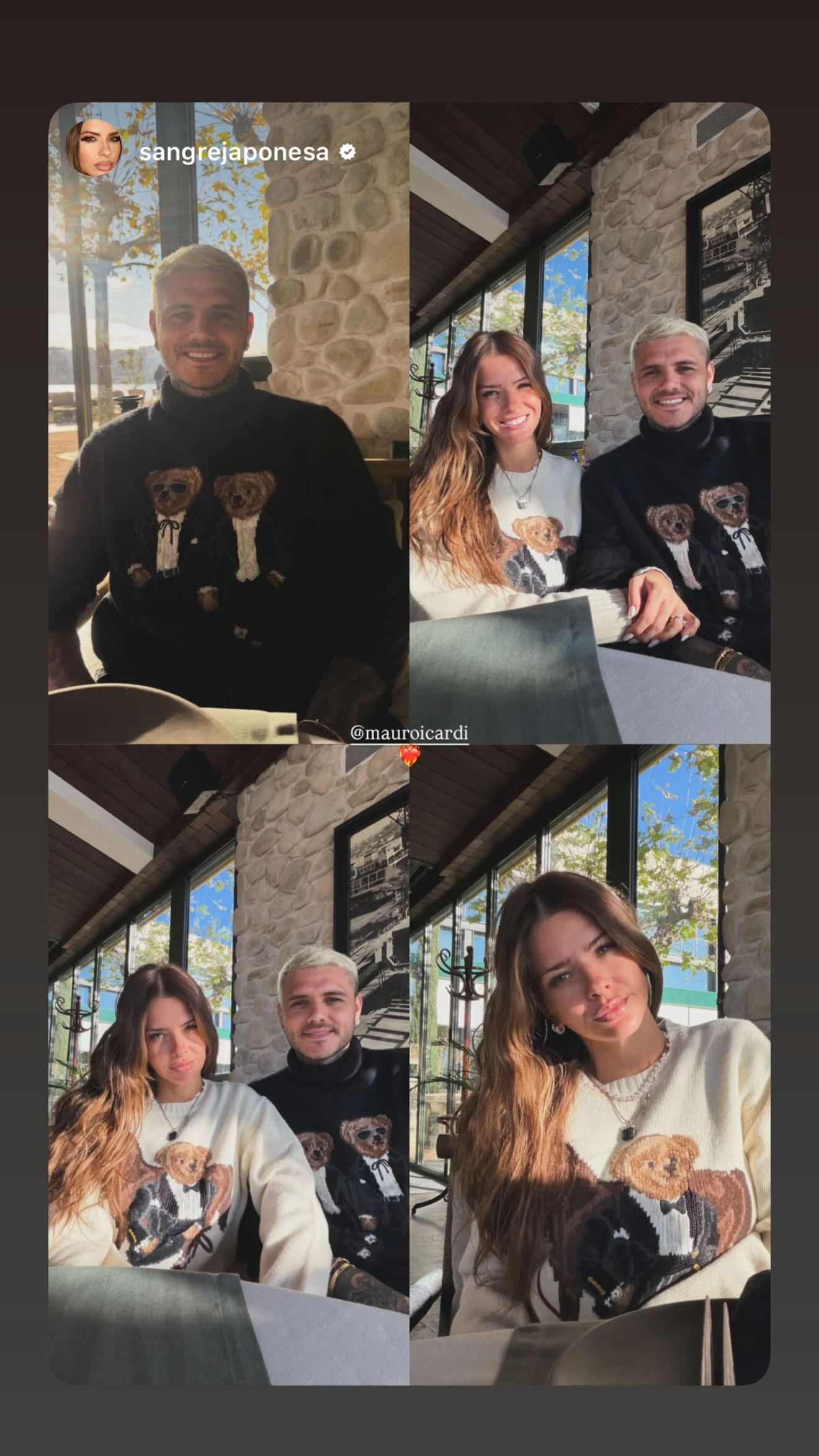 A la mañana siguiente de su llegada, la pareja volvió a mostrarse en redes sociales, esta vez ya fuera de la casa. Mauro Icardi y la China Suárez salieron a recorrer la ciudad y aprovecharon el último desayuno del año en Estambul, en una jornada soleada que contrastó con la nevada de la noche anterior. Para la ocasión, ambos eligieron looks matcheados con buzos de ositos, un detalle que no pasó desapercibido y que volvió a reflejar la sintonía y complicidad que atraviesa el presente de la pareja.