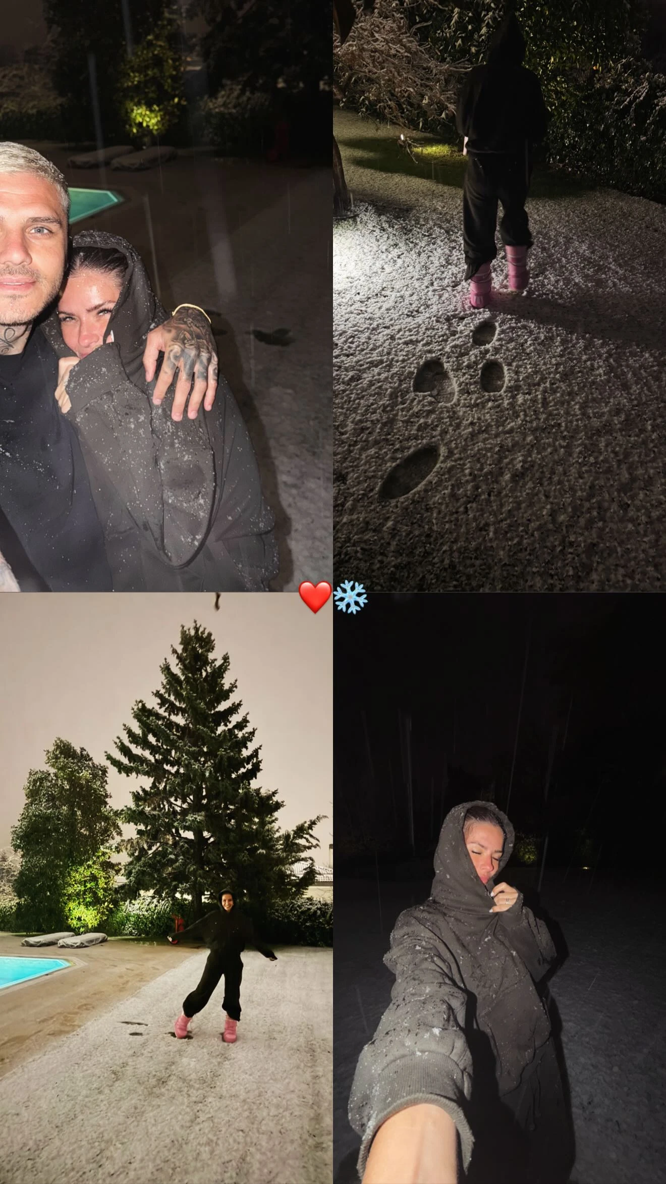 A través de una serie de imágenes publicadas en Instagram, ambos dejaron ver la intimidad de su llegada. En las fotos se los ve abrigados, con looks invernales, disfrutando del frío extremo y del entorno nevado que rodea la casa en la que se instalaron. En una de las postales, Icardi aparece abrazando a la actriz, ambos con capucha y sonriendo frente a la cámara, en una escena que transmite complicidad y cercanía.