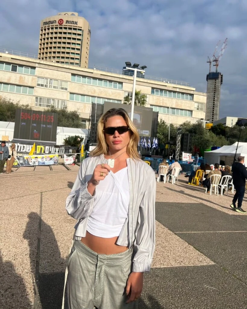 Junto a este mensaje, la actriz compartió unas postales que se sacó este sábado en la plaza de los secuestrados, recorriendo todos los espacios que se armaron desde el 7 de octubre del 2023, pidiendo por los rehenes que están en la Franja de Gaza.