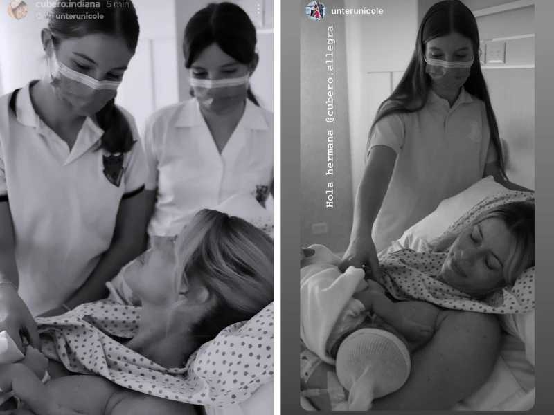 Por supuesto, uno de los momentos más esperados era el encuentro entre Indiana Cubero, Allegra y Sienna con el nuevo miembro de la familia. Y fue en horas de la tarde que las jovencitas no pudieron contener la emoción de publicar imágenes de este especial momento familiar.