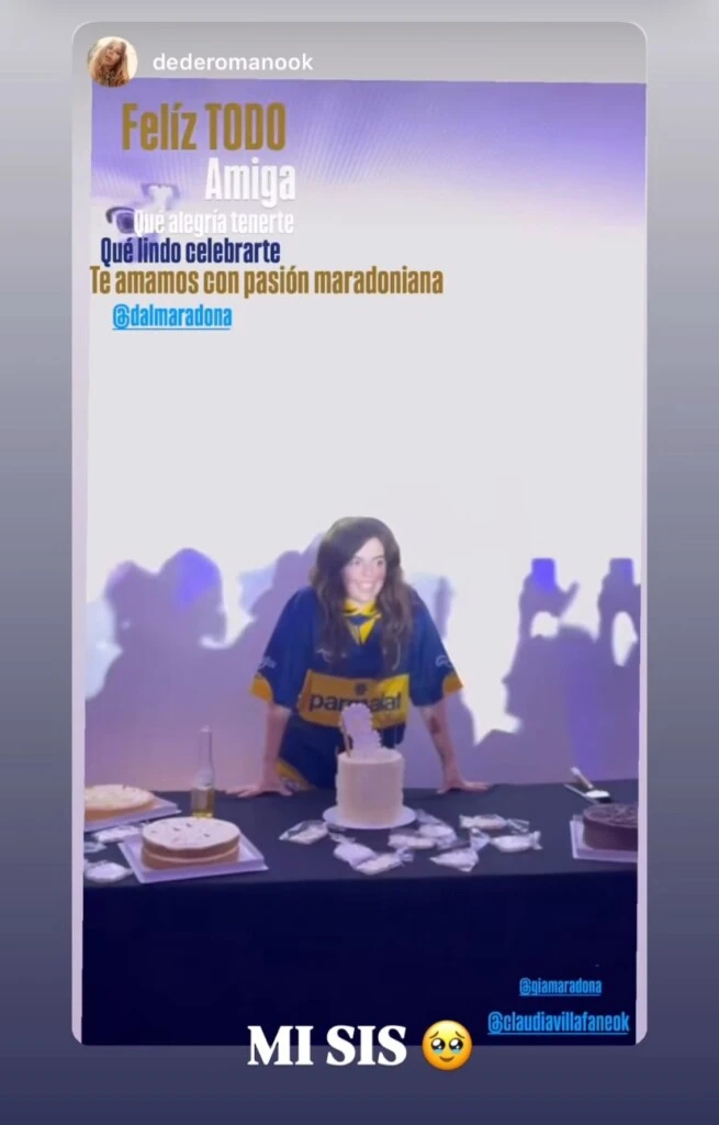 Otro de los guiños maradonianos que sumó la actriz en su cumpleaños fue una decoración con flores de margaritas. Esto hace referencia a una secuencia viral de ella en su infancia colocándole estas flores a su papá en pleno entrenamiento en el Club Napoli.
