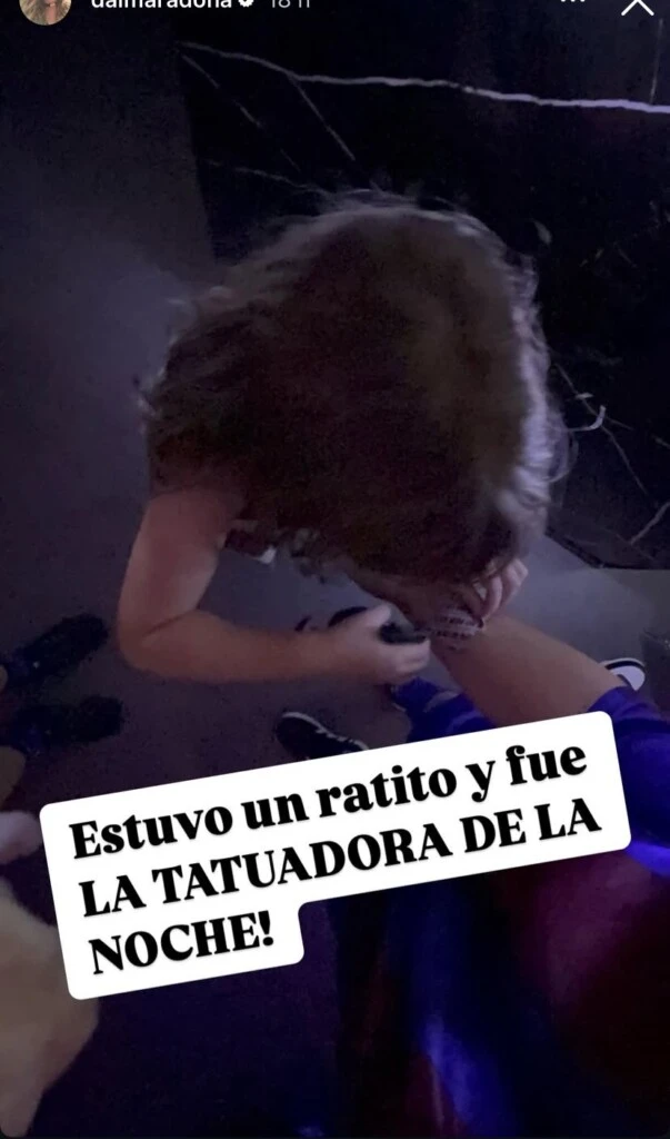 "Estuvo un ratito y se fue. La tatuadora de la noche", escribió Dalma junto una fotografía en la que se veía apenas la cabeza de su hija mayor, Roma, asistiendo a los invitados con la colocación de los tatuajes temporales.