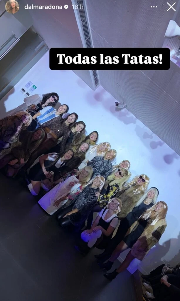 Una de las fotografías más divertidas se dio cuando se juntaron todas las invitadas que se disfrazaron de Claudia Villafañe con la organizadora de eventos. Por su parte la mamá de Dalma eligió asistir con el delantal de MasterChef (Telefe), reality show en el que salió ganadora. En tanto las amigas de la cumpleañera optaron por looks más arriesgados de Claudia con pelucas rubias y exuberantes tapados de piel.