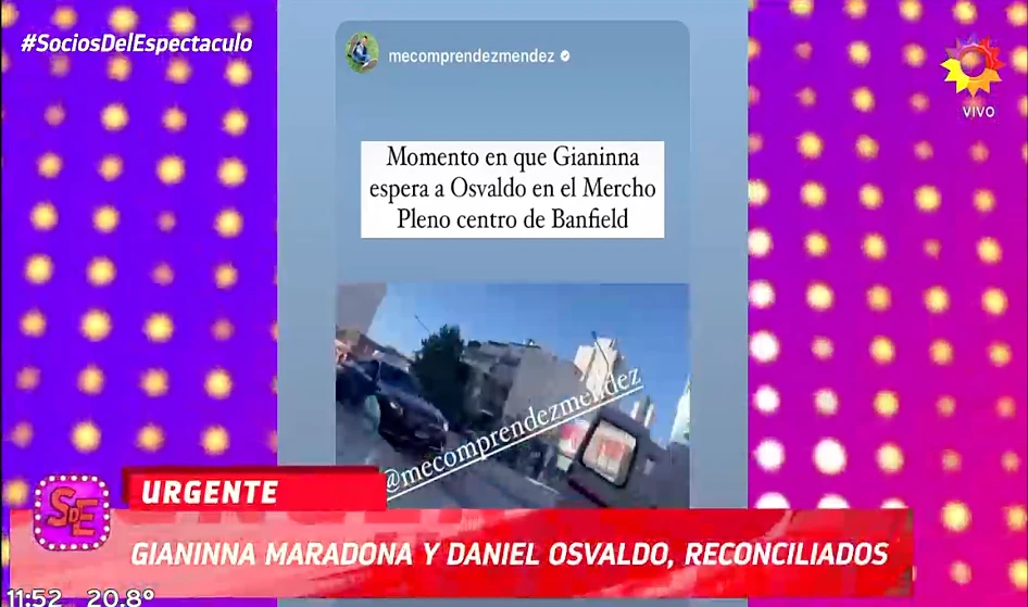 Rodrigo Lussich expresó antes de mostrar las publicaciones: "Reconciliación confirmada de Daniel Osvaldo y Gianinna Maradona. Fueron vistos juntos cuando ella lo acompañó a él".