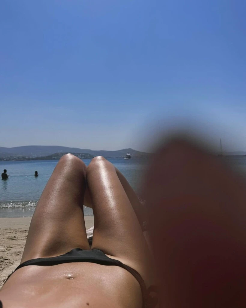 En otra fotografía se puede ver a Lucía disfrutando de un día en la playa, donde se la ve tomando sol en un bikini negro, un look clásico y minimalista que resalta su estilo natural. Según se puede asociar con otras imágenes que compartió la joven ambos pasaron un par de días en las playas griegas.