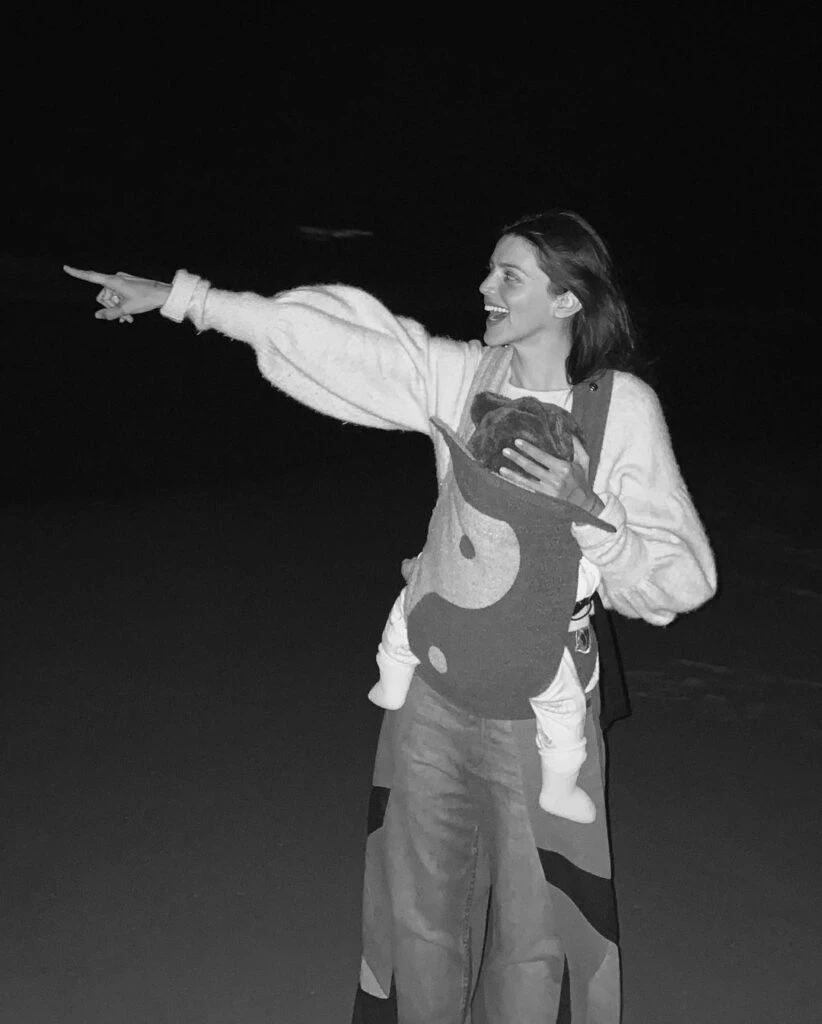 La actriz se mostró mega sonriente mientras sostenía a su bebé en un fular con un diseño de ying y yang. El motivo de su alegría se dio por estar apreciando por primera vez junto a Tao las noctilucas.