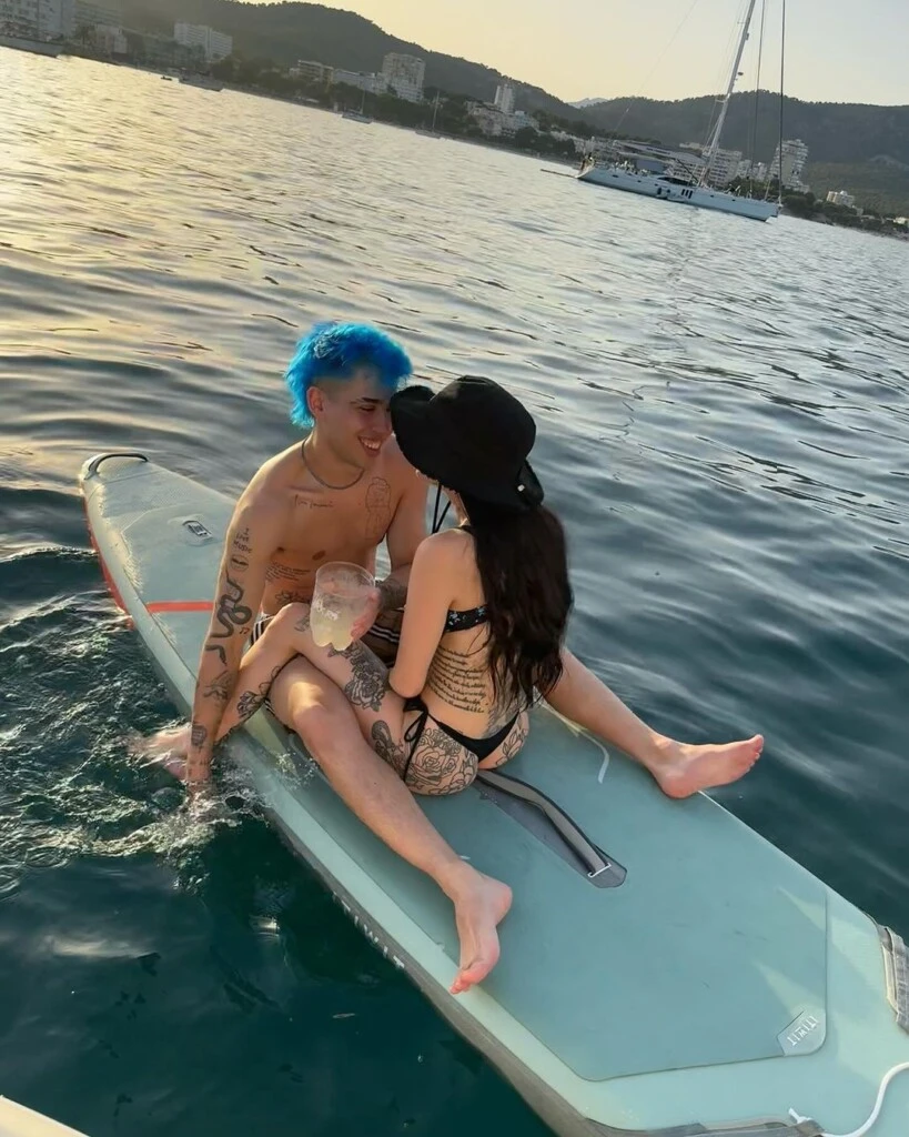 Lejos de Argentina y del clima del invierno, la pareja está aprovechando el verano en Mallorca, España: ella aparece con un microbikini en color negro, que combinó perfectamente con un sombrero y lentes oscuros. Mientras que Luck Ra lleva una malla.