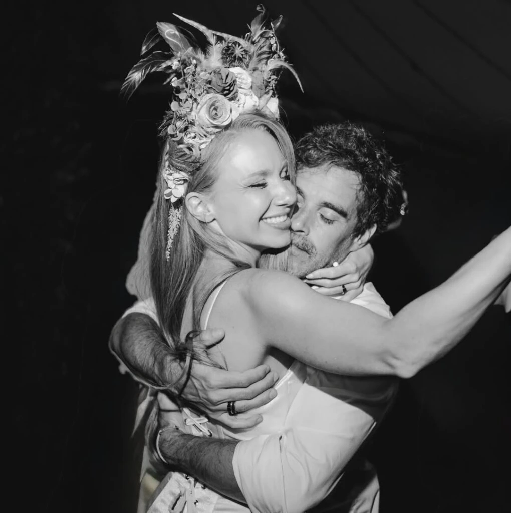 Fieles a su estilo bohemio y relajado, optaron por una ceremonia íntima seguida de un ritual de handfasting, una antigua tradición celta que simboliza la unión de las almas.