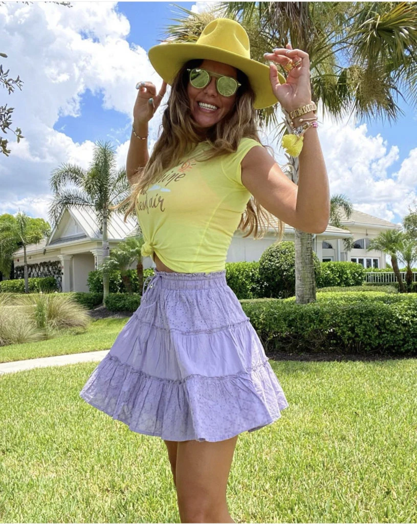 "Queen of my castle" (reina de mi castillo), escribió en uno de sus recientes posteos, donde se la ve parada en el amplio jardín. De fondo se ve la casa, mientras ella luce lentes de sol y sombrero amarillo.