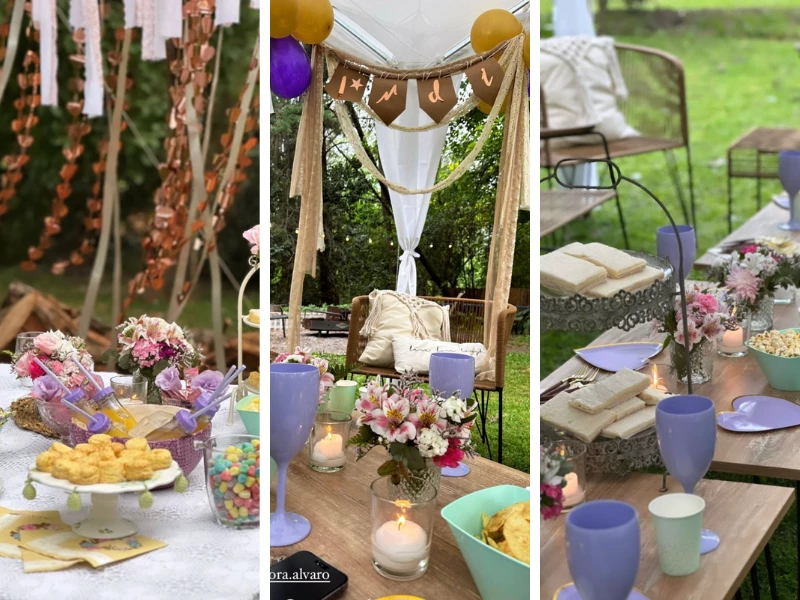 En las fotos capturadas durante el evento y compartidas por la jurado de Los 8 Escalones se observa a los presentes posando frente a una mesa dulce, clásico en las celebraciones de quinceañeros, con centros de mesas florales que iban a tono con la gama de colores en violeta pastel de la torta y las vajillas. Color que resaltaba con la madera y las sillas de ratán.