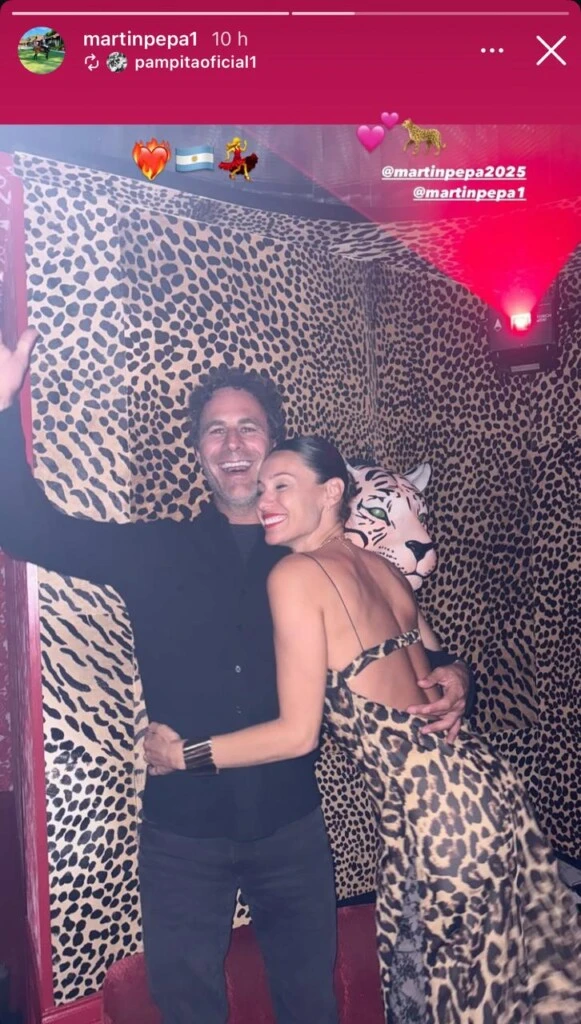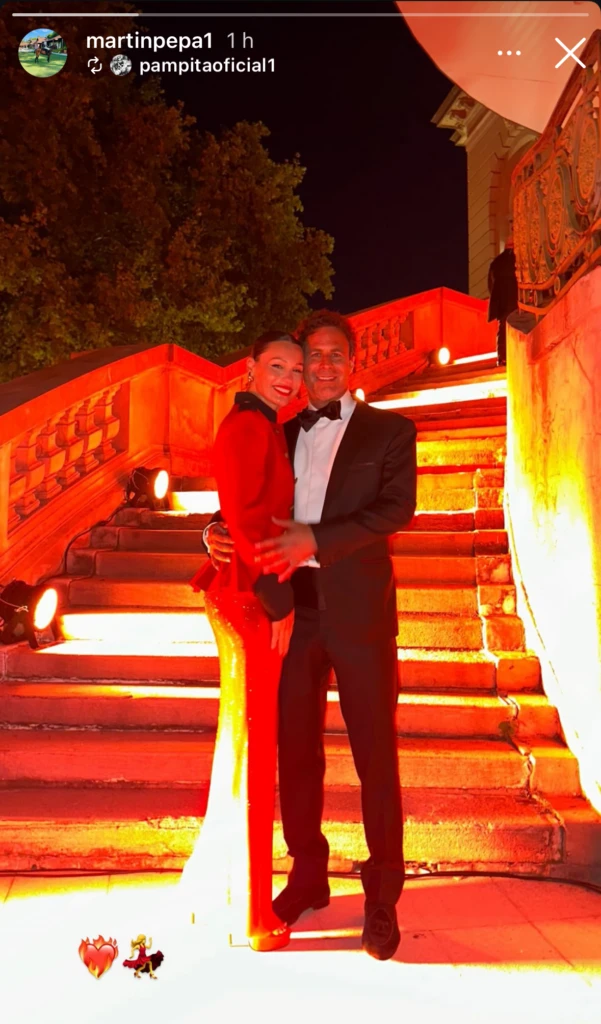 A su vez, Martín compartió una postal que había subido Pampita, en la que se los puede ver posando súper felices en el centro de una gran escalinata de piedra. A la historia le agregaron dos emojis, corazón con fuego y una bailarina.