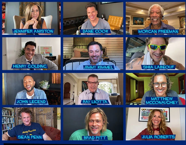 En un segundo video puede verse a Aniston leyendo parte del guión mientras Pitt sonríe, igual que el resto de las celebrities: los propios Sean Penn y Dane Cook, Julia Roberts, Matthew McConaughey, Morgan Freeman, John Legend, Ray Liotta, Henry Golding, Jimmy Kimmel y Shia LaBeouf.