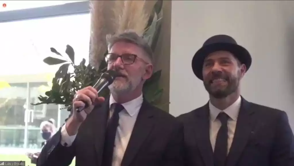 El conductor de "Debo Decir" y el empresario anunciaron su boda a través de un íntimo video que compartieron con sus seres queridos. Si bien no pudieron organizar un fiesta por las restricciones que aún persisten ante el coronavirus, la pareja decidió realizar un festejo virtual a través de Zoom.
