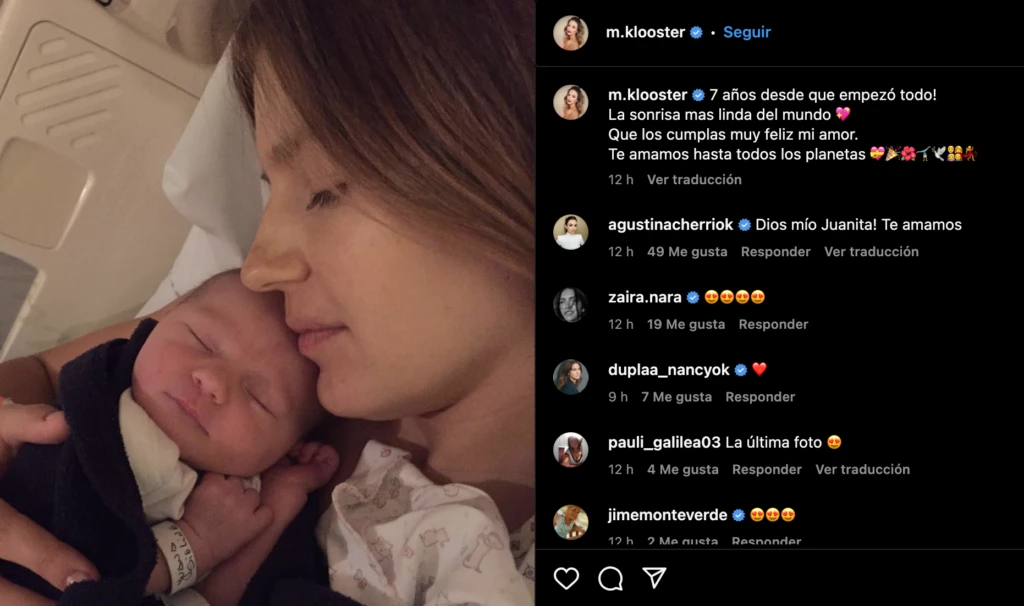 Y agregó: "Que los cumplas muy feliz mi amor. Te amamos hasta todos los planetas". La publicación cosechó rápidamente miles de likes y comentarios de los seguidores de Kloosterboer, a quienes ya tiene acostumbrados a que la vean en familia. Sin embargo, entre los comentarios que destacaron fueron los de sus colegas y amigas: Zaira Nara, Agustina Cherri y Nancy Dupláa, todas felices por lo grande que está Juana y el notable amor y orgullo que su madre siente hacia ella.