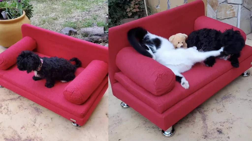 Es que Morita se vio obligada a compartir su cómoda cama con forma de sofá con Cleo, la gata de la familia Ginocchio, que es la nueva compañera de juegos de la cachorrita de Gran Hermano. De hecho, ya fueron filmados jugando y correteando por el jardín del hogar.