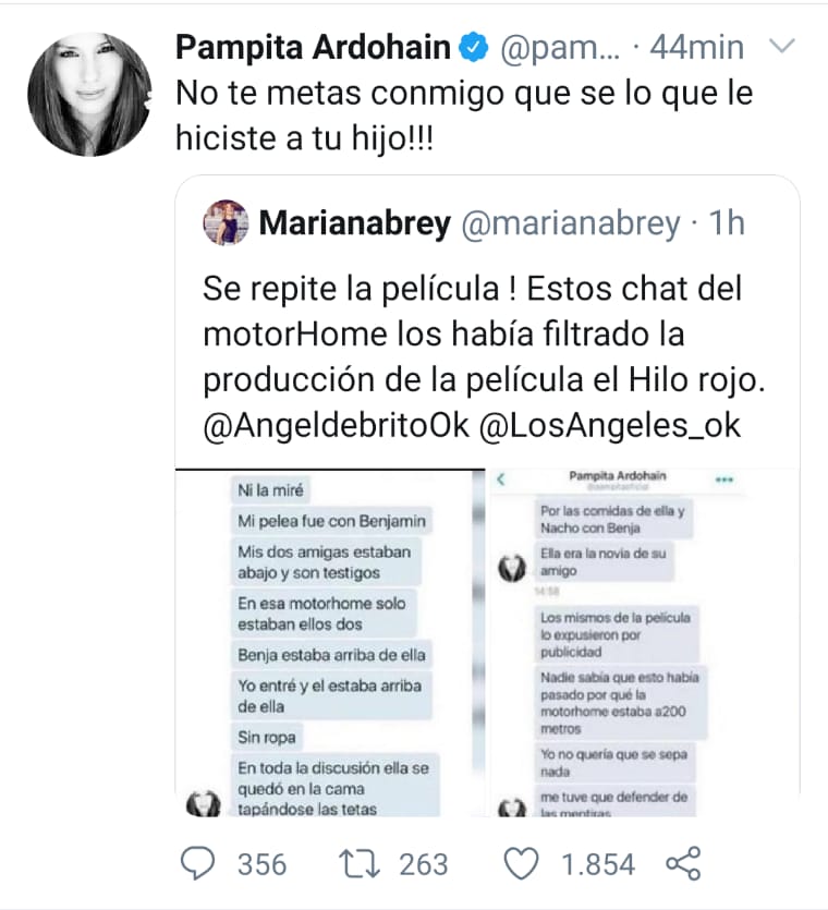 Luego del tuit que apareció en la cuenta de Pampita –"no te metas conmigo que sé lo que le hiciste a tu hijo"–, la panelista de 'LAM' volvió a cargar contra la conductora.