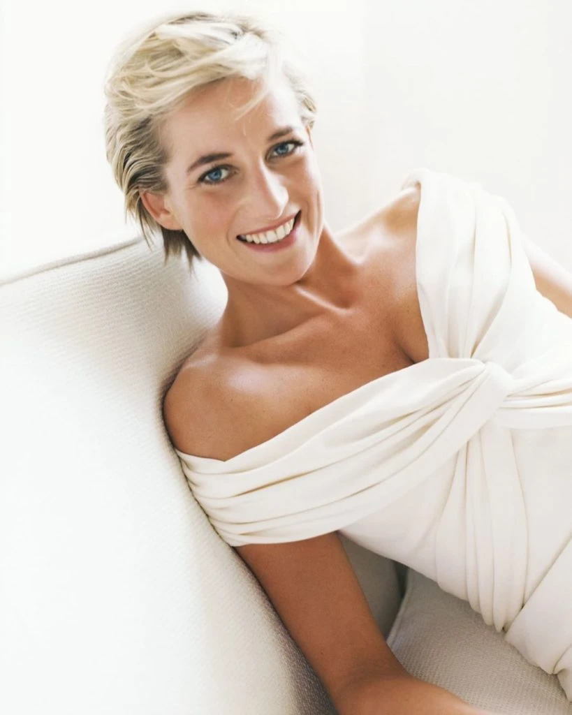 "Recordando hoy a la Princesa Diana. Era tan elegante y amable. Durante la sesión de fotos le pedí que se sentara en el sofá que el arquitecto David Collins había hecho especialmente para ella. Cuando lo hizo, muy derecha y correcta, me recordó a mi madre siempre diciéndoles a mis hermanas que se sentaran con la espalda recta y las rodillas juntas"