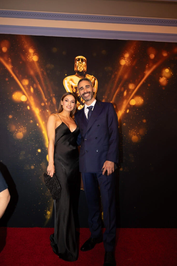 Los conductores de la gala, Pampita y el Pollo Álvarez pasaron por la alfombra roja y se mostraron acompañados de sus respectivas parejas, Roberto García Moritán y Tefi Russo.