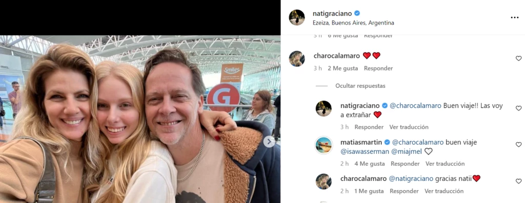 Matías Martin y Natalia Graciano vivieron un fin de semana especial, ya que su hija Mia Martin (17) viajó desde Ezeiza hacia la aventura. La modelo compartió un carrusel de tres fotos en donde se los ve a los tres a pura emoción agridulce.
