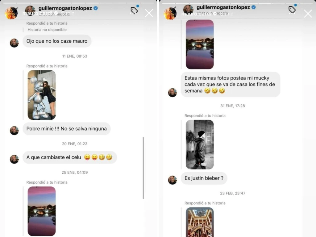 Entonces, compartió imágenes del chat entre el abogado Guillermo Gastón López, socio director del estudio jurídico Payarola y Asociados, y la actriz. "Ojo que no los caze Mauro"; "Pobre Minnie, no se salva ninguna"; "Estas mismas fotos postea mi mucky cada vez que se va de casa los fines de semana", fueron algunos de los mensajes que le habría escrito ese letrado a la China.