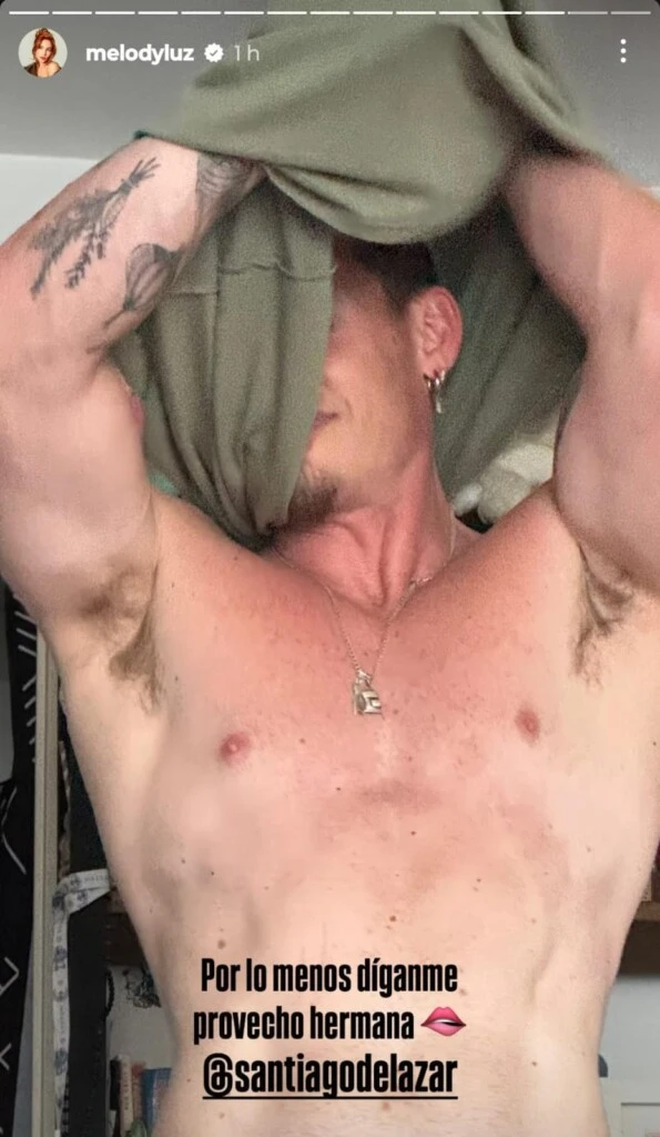 Minutos después, posteó una fotografía del cocinero con el que comenzó recientemente un romance y puso: "Por lo menos díganme buen provecho hermana", escribió sobre la imagen en la que Del Azar aparece sin camisa.