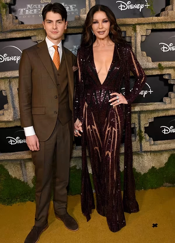 En el marco de la avant premiere “National Treasure: Edge of History”, Catherine Zeta-Jones se mostró junto a su hijo mayor y marcaron juntos estilo en la red carpet. Dylan Douglas, de 22 años, sorprendió al mostrarse con una melena un tanto desordenada y con una renovación en su look que lució un tanto más moderno que en otras oportunidades.