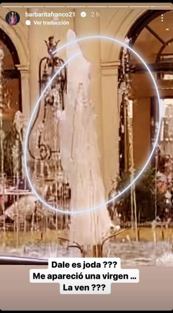 A través de sus redes sociales muy sorprendida por lo ocurrido escribió: "Dale, es joda??? Me apareció una virgen. La ven???", sumando una imagen del momento que la descolocó por completo.