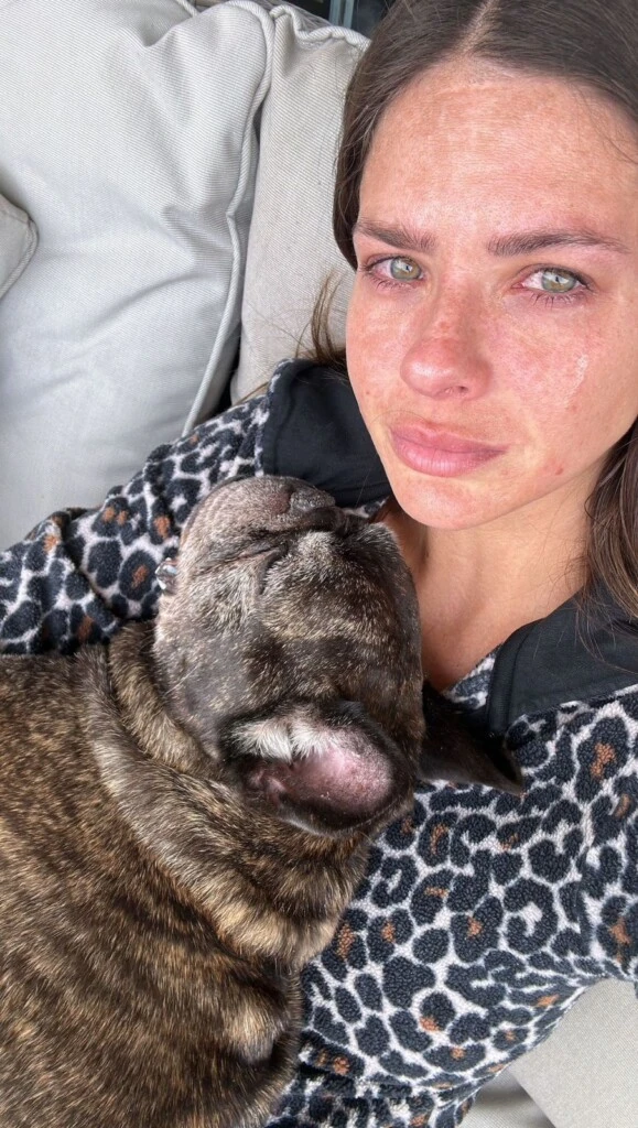 A a las 21.17, la reconocida actriz subió a dicho canal una serie de mensajes hablándole a sus fans y además compartió una desoladora imagen de ella llorando con su mascota en brazos.