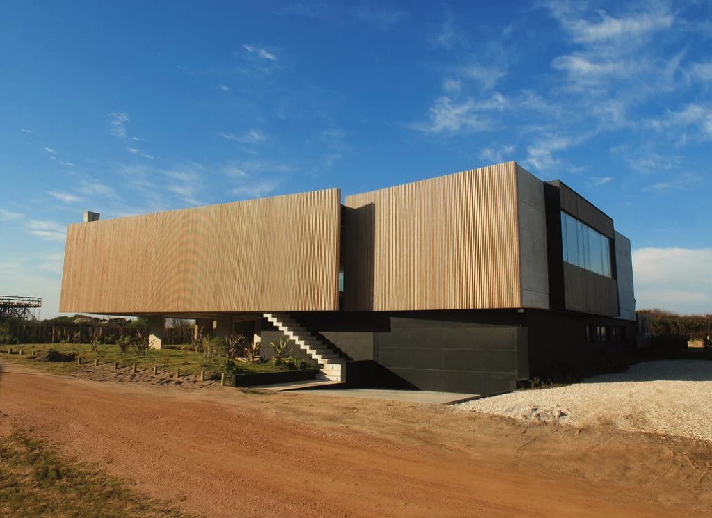 La casa, cuyo frente el frente revestido en madera, se levanta sobre un terreno de 1.671 metros cuadrados y en dos grandes plantas. En la planta inferior, se ubica un amplio garaje , la sala de máquinas y calderas, el lavadero, gimnasio, la sala de tanques de agua y un depósito que se conecta directamente con la planta alta a través de una escalera, según el diario uruguayo El País.