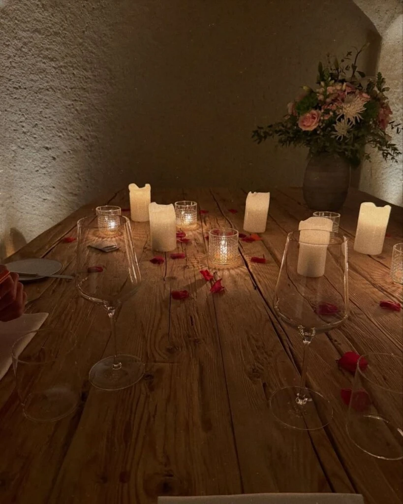 Sin embargo, el verdadero "hit" del viaje fue la noche que el futbolista organizó para Valentina. En una de las fotos más impactantes, se observa una imponente escalera de piedra iluminada por cientos de velas blancas y cubierta por una alfombra de pétalos de rosas rojas.