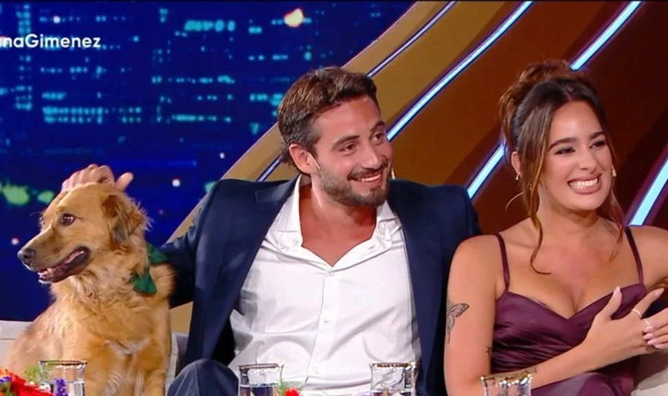 Nico Occhiato y Flor Jazmín Peña visitaron el living de Susana Giménez por primera vez y protagonizaron emocionantes momentos desde que ingresaron, vestidos de gala y acompañados por Carlitos, el perro del conductor, a quien le puso moño para la ocasión.