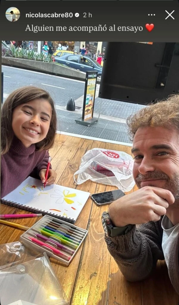 "Alguien me acompañó al ensayo", escribió junto a una foto con la jovencita que cumplió recientemente sus 12 años. En la imagen aparece Rufina pintando en una libreta mientras pasa tiempo con su padre y lo acompaña a sus compromisos profesionales.