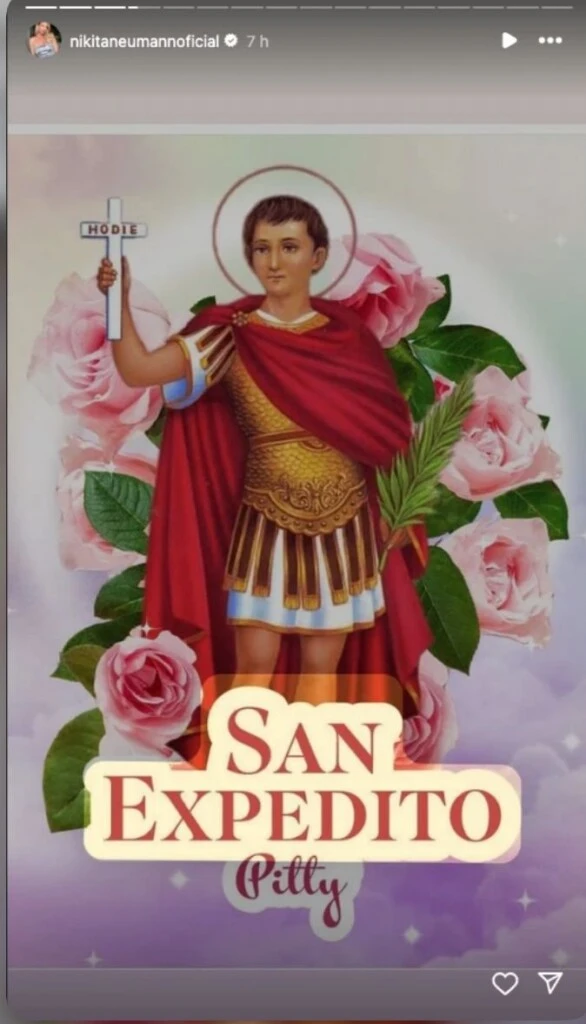 "Les había hablado de las 'diosidencias' que me llevaron a él en noviembre pasado y mis experiencias con San Expedito", comenzó diciendo la modelo desde un video de Instagram sobre las coincidencias que tuvo a lo largo de su vida con dicho santo.