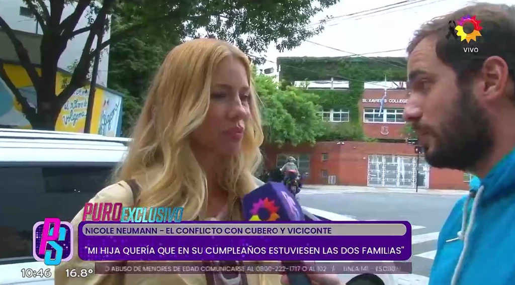 "Y todo lo que quiera, obviamente, le dije, yo todo lo que pueda colaborar y ayudarte, obviamente... soy la mamá, son los 15 de mi hija, y ahí estaré", afirmó la modelo. A lo que el notero le consultó: "¿Y si Mica (Viciconte) se quiere meter en la organización de cumpleaños de 15? Para ayudarlo a Fabián". Tras dudarlo, Neumann sentenció: "Allegra es la que decide, ella verá".