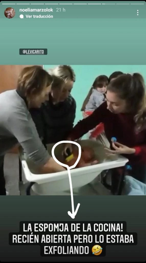 Fiel a su estilo, la bailarina recurre al humor para contar en sus redes sociales las nuevas aventuras que vive como madre primeriza. En esta ocasión, la protagonista de "Sex, viví tu experiencia" llamó la atención de sus seguidores de Instagram tras compartir una postal en sus historias donde se la ve bañando a su bebé con una esponja de cocina que se utiliza para lavar los platos.